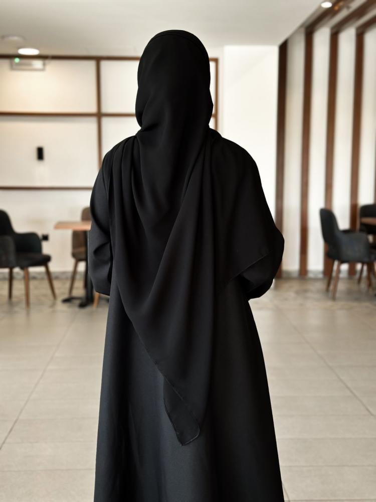 • اللون الأسود للطرحة ثابت لا يبهت بسرعة مع الاستعمال كما أنه يتماشى مع جميع اشكال العبايات والوانها.